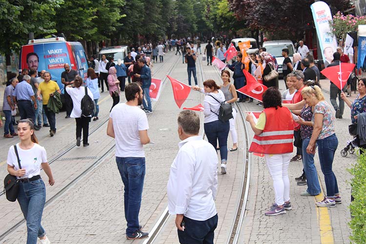 Seçim çalışmalarının hız kazanmasıyla demokratik görüntülerin ortaya çıktığı Eskişehir’de, partiler yan yana kurdukları stantlar ile 24 Haziran seçimleri için gün boyu propaganda yapıyor.