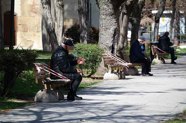 Eskişehir’de güneşli havayı fırsat bilen bazı vatandaşlar yasakları hiçe sayarak soluğu parklarda aldı ve şerit çekilerek kullanımı yasaklanan banklarda rahatlıkla oturdu.