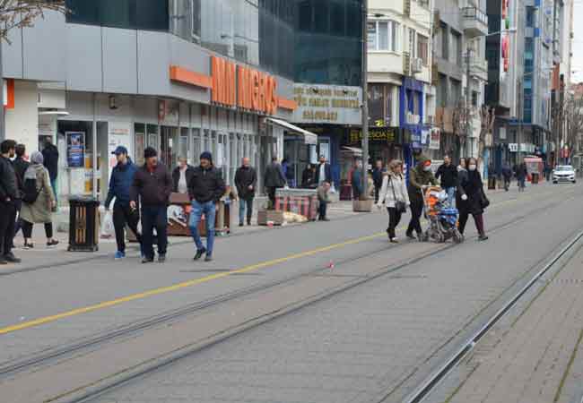 Eskişehir'de koronavirüse karşı 'evde kal' çağrılarına rağmen çok sayıda vatandaş Hamamyolu ve İki Eylül Caddesi'ne akın etti.