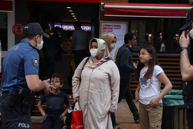 Eskişehir'de, polis ekipleri kentin işlek cadde ve sokaklarında maske denetimi yaptı. Gerçekleşen denetimlerde, kurallara uymayan kişilere idari para ceza uygulandığını fark eden bazı vatandaşlar, polisi görünce adeta maskesine sarıldı.