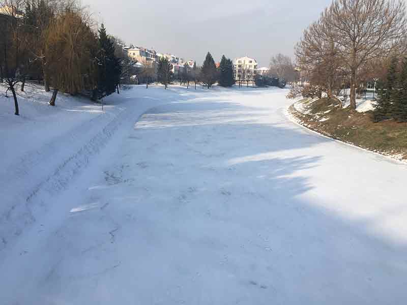 Hava sıcaklığının sıfırın altında seyrettiği Eskişehir’de, bir kısmı buz tutan Porsuk Çayı, beyaz örtüyle kaplandı.
