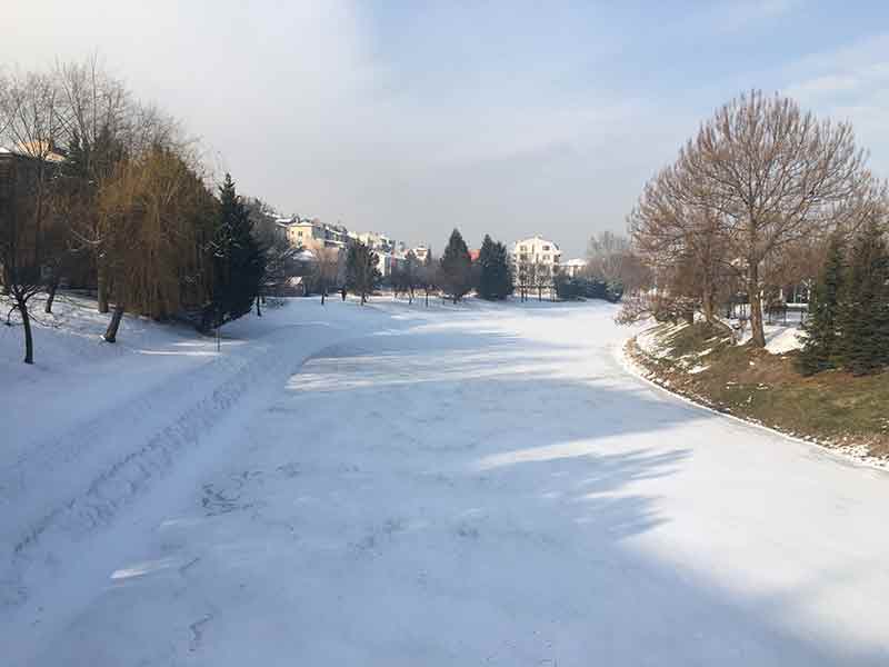 Hava sıcaklığının sıfırın altında seyrettiği Eskişehir’de, bir kısmı buz tutan Porsuk Çayı, beyaz örtüyle kaplandı.