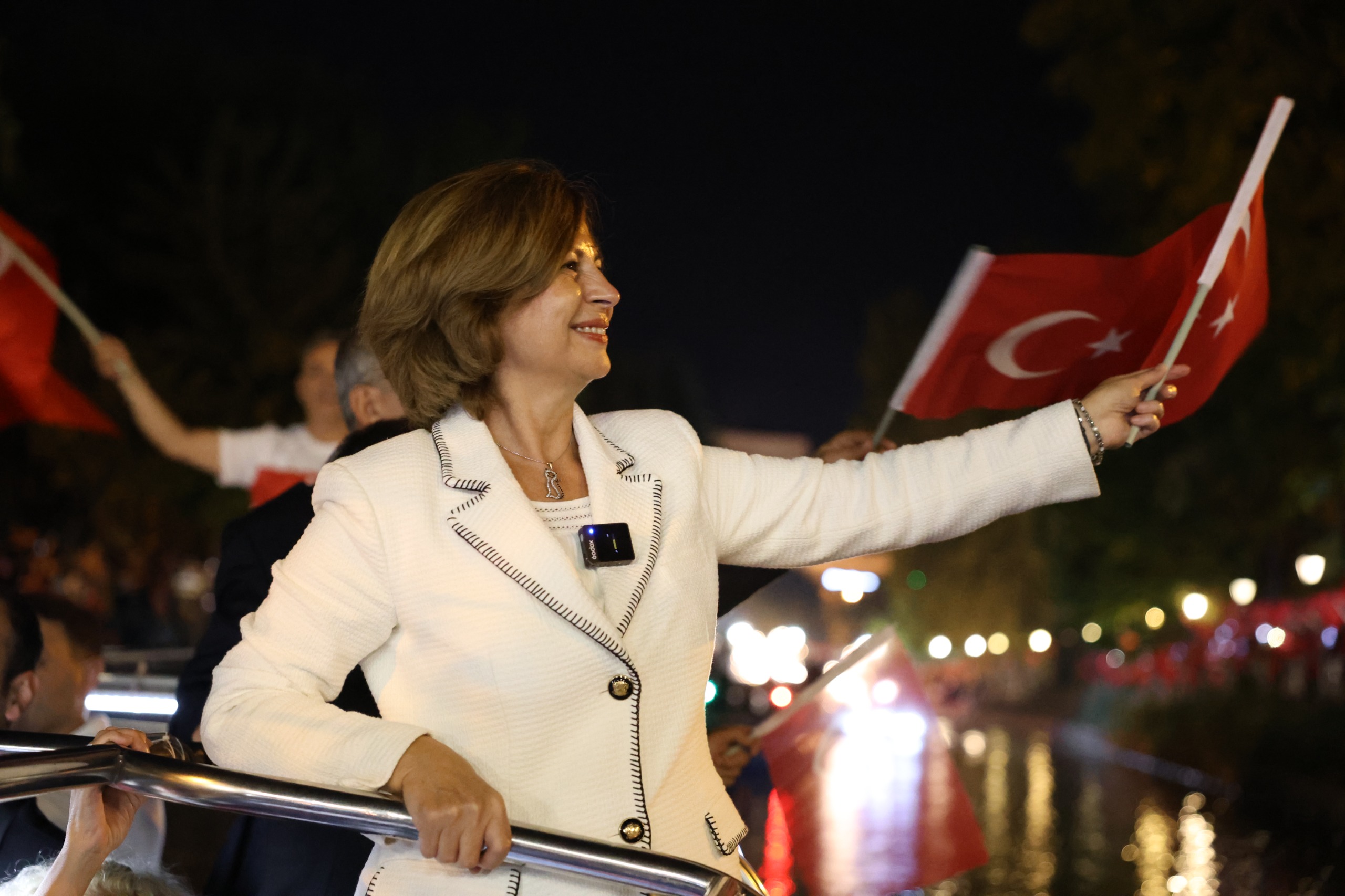 30 Ağustos Zafer Bayramı’nın 102. yıl dönümü nedeniyle Porsuk Çayı’nda düzenlenen Fener Alayı büyük bir coşkuya sahne oldu. Porsuk Çayı'nın etrafını dolduran binlerce Eskişehirli' ye seslenen Başkan Ayşe Ünlüce, “30 Ağustos Zafer Bayramımız kutlu olsun! Bu gece ne kadar güzelsin Eskişehir!” dedi.