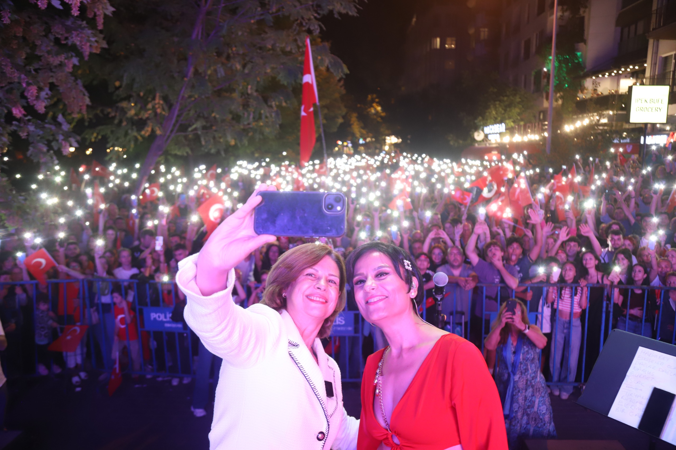 Fener Alayının ardından Adalar Porsuk Bulvarı’nda Dilek Kavraal ve orkestrası, şarkılarıyla Zafer Bayramı coşkusuna ortak oldu. Binlerce Eskişehirli hep bir ağızdan “Haydi Eskişehir Olalım” şarkısını söylediler.