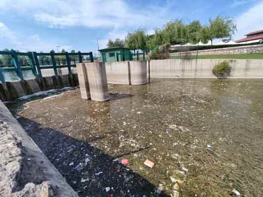 Eskişehir’den geçen Porsuk Çayı’nda biriken ve su yüzeyini kaplayan ağaç dalları ve çöpler hayrete düxürüyor.