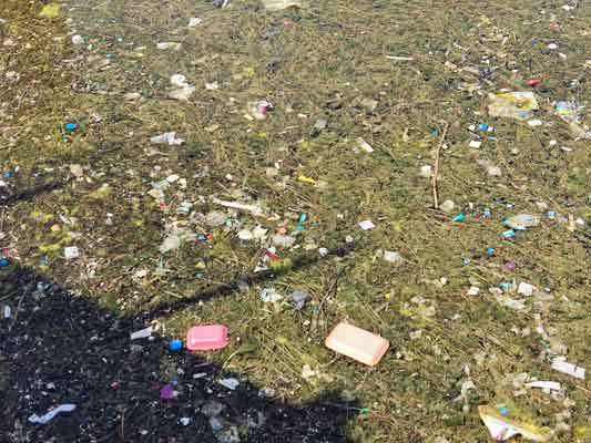 Atılan çöplerin arasında plastik ve cam şişeler ile ambalaj atıkları bulunuyor. Su yüzeyini kaplayan kirlilik görenleri hayrete düşürüyor.