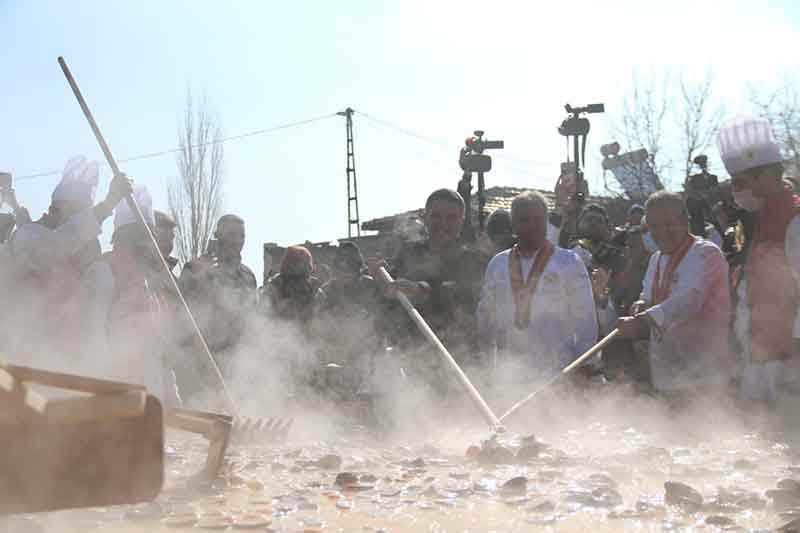 Eskişehir’in Sivrihisar ilçesinde altıncısı düzenlenen Dövme Sucuk Festivali’nde yeni bir rekora imza atılarak, dünyanın en büyük sucuklu yumurtası yapıldı.