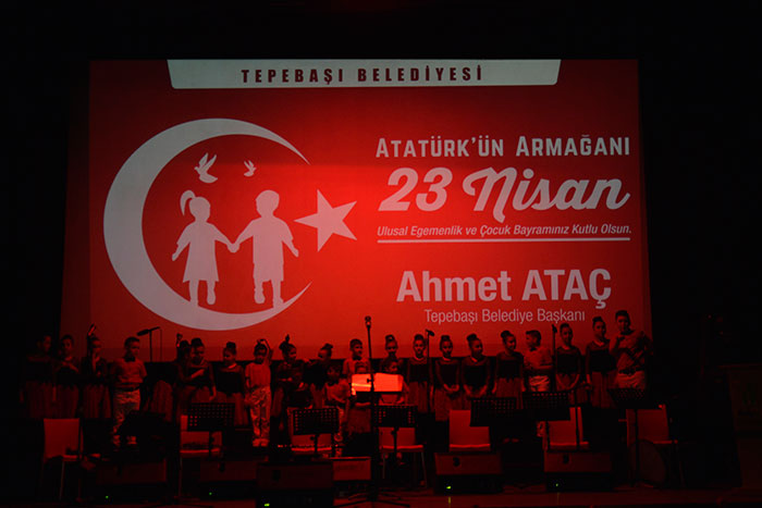 Tepebaşı Belediyesi Türk Sanat Müziği Çocuk ve Gençlik Korosu, 23 Nisan Ulusal Egemenlik ve Çocuk Bayramı Konserinde bayram coşkusunu marş ve şarkılarla yaşattı.