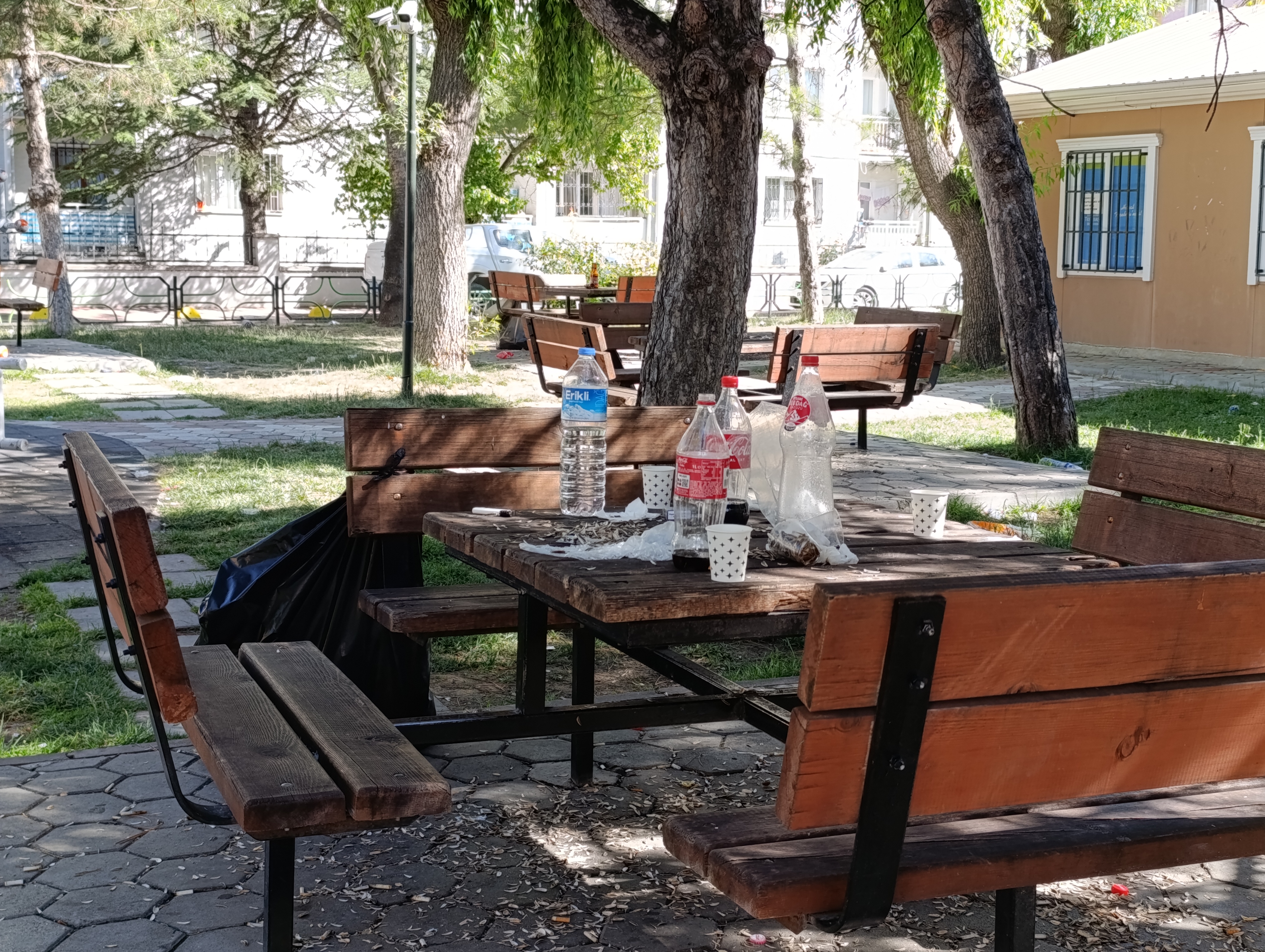 Parkta özellikle geceleri alkollü içecek ve meşrubat tüketimi artarken, parkın her köşesi çöplerle dolup taşıyor. Banklar, içki şişeleri, kuruyemiş kabukları ve yiyecek artıklarıyla kaplıyken, spor aletleri ve çocuk oyun alanı da çöplerden etkileniyor.