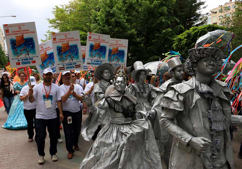 Eskişehir Büyükşehir Belediyesi Şehir Tiyatrolarınca düzenlenen "11. Uluslararası Eskişehir Çocuk ve Gençlik Tiyatroları Festivali", kortej yürüyüşüyle başladı.