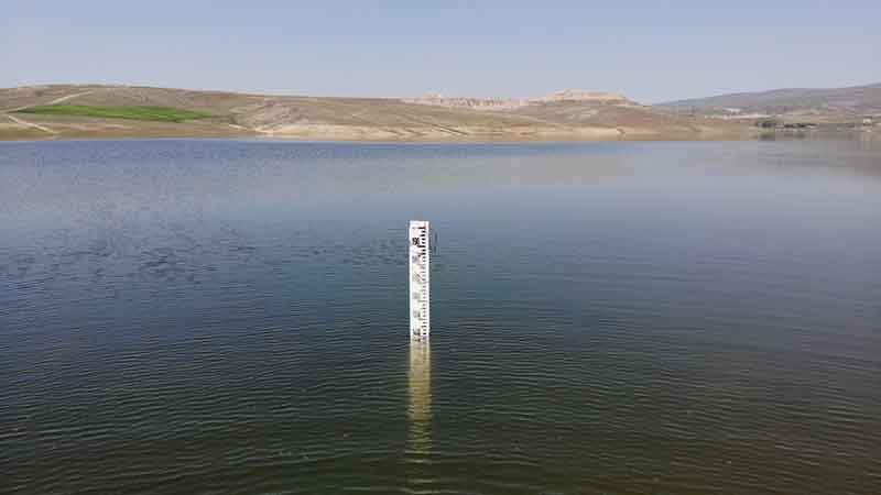 Kış mevsiminde etkili olan kar ve yağmurla birlikte su seviyesi artan baraj, dron ile havadan görüntülendi.