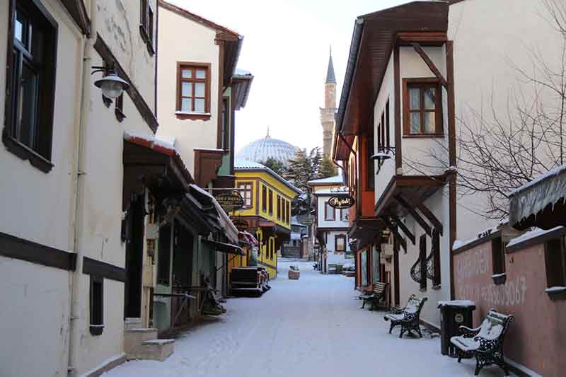 Her yıl binlerce yerli ve yabancı turist tarafından ziyaret edilen tarihi bölgede, karla kaplı çatılar ve sokaklar seyrine doyumsuz manzaralar oluşturdu