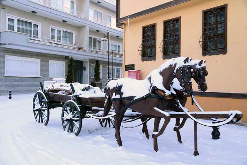 Eskişehir’de etkili olan kar yağışı nedeniyle adeta beyaz gelinliğini giyen tarihi Odunpazarı Bölgesi havadan görüntülendi. Tarihi bölgeyi örten beyaz örtü görsel şölen oluşturdu.
