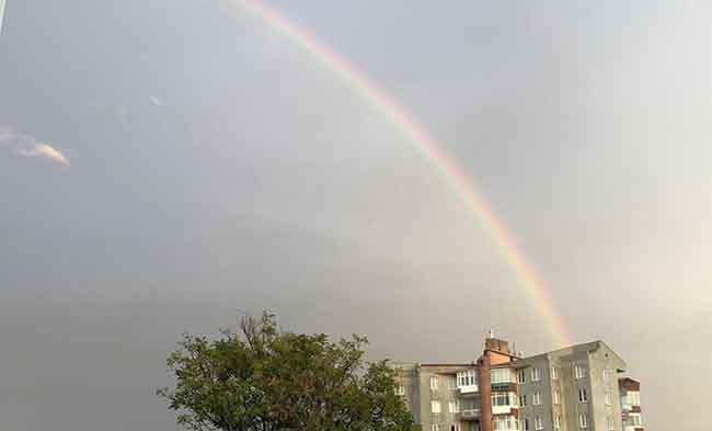 Eskişehir'de kısa süreli de olsa gökyüzünü söyleyen gökkuşağı güzelliği yaşandı.