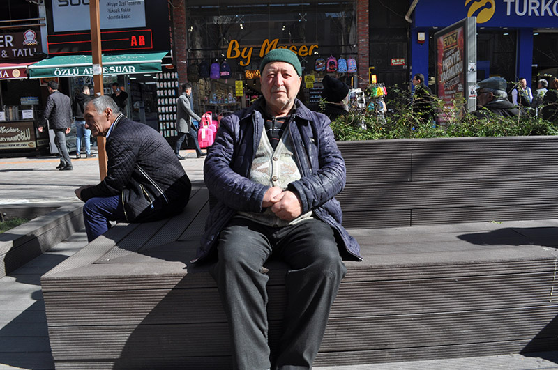 Hamamyolu Caddesi'nde sıcak havanın tadını çıkaran Tahir Mercan, hava sıcaklıklarının mevsim normalleri dışında olduğunu ve gelecek günler için endişelendiğini belirtti.