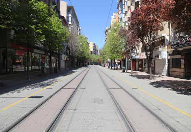 Eskişehir, Cumhurbaşkanı Recep Tayyip Erdoğan tarafından açıklanan dört günlük sokağa çıkma kısıtlamasının son gününde de sessizliğe büründü. (Fotoğraflar: Hilal Köver/AA)