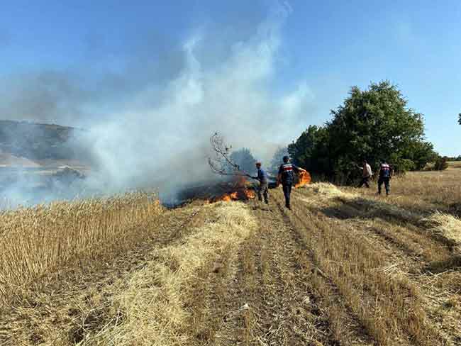 Eskişehir’de bir tarlada biçerdöverin bıçaklarından çıkan kıvılcımların sebep olduğu yangında 12 dönüm alana ekili olan buğday zarar gördü.