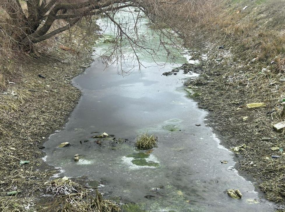 Eskişehir’deki soğuk hava, sulama kanallarında donma olayına yol açarken, çöpler buz üzerinde hapsolarak ilginç bir manzara oluşturdu.
