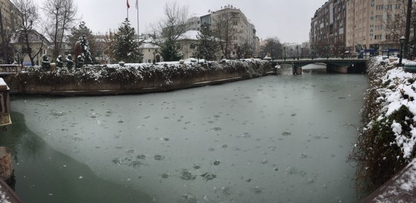 Eskişehir'de, gece saatlerinde başlayan ve etkisini arttırarak devam eden yoğun kar yağışı Porsuk Çayı'nın da yer yer buz tutmasına neden oldu.