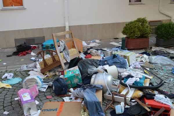 Çevreye atılan eşyalar yüzünden ortalık savaş alanına dönerken, şans eseri kimse yara almadı.