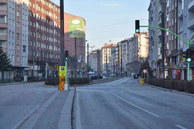 Yeni tip koronavirüs (Kovid-19) tedbirleri kapsamında ülke genelinde hafta sonu uygulanan sokağa çıkma kısıtlaması nedeniyle Eskişehir'de sessizlik hakim oldu.