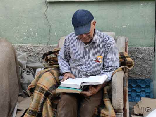 Eskişehir'de emekli tarih öğretmeni Orhan Aslan yıl boyunca edindiği kitapları rutubetten korumak için sokağa serdi.