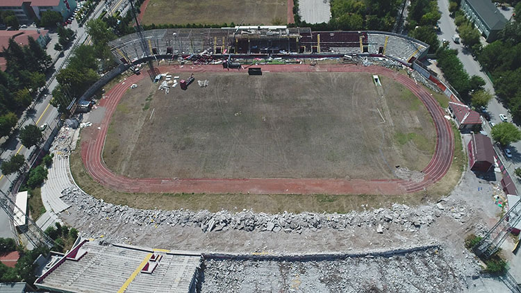 Eskişehir'de spor tarihinin en büyük şahitlerinden biri olan Atatürk Stadyumu'nda yıkım işlemleri devam ediyor.