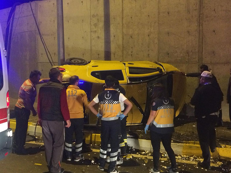 Eskişehir'de meydana gelen trafik kazasında, kontrolden çıkıp takla atan aracının içinde sıkışan taksi sürücüsü, itfaiye ekiplerinin çalışması sonucu kurtarıldı.
