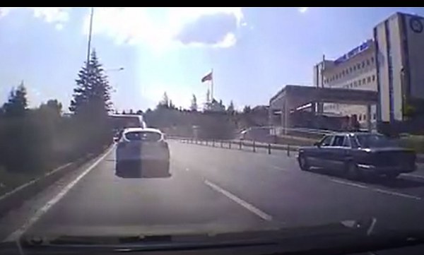 Eskişehir'de meydana gelen olayda amatör kameralara yansıyan görüntüde otomobiller ters yönden gelen araca çarpmamak için büyük uğraş verdi.