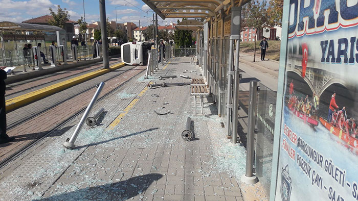 Kaynak: Eskişehir'de ticari araç tramvay durağına daldı