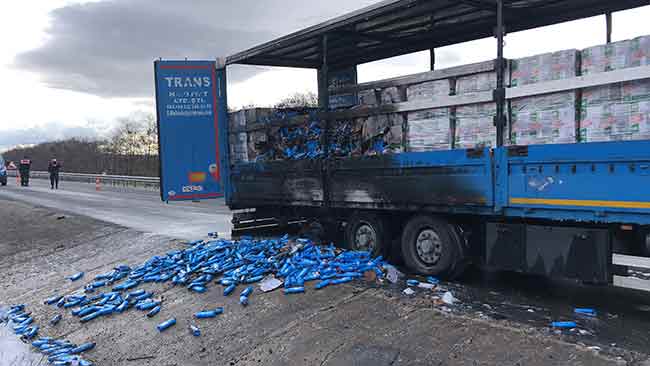 Eskişehir Bilecik karayolunda seyir halindeyken tekerinden başlayan alevlerin yayılması ile kısa sürede bir bölümü tutuşan tırda büyük hasar meydana gelirken, olay sırasında sürücü ve çevredekiler büyük panik yaşadı.