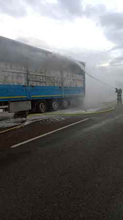 Eskişehir Bilecik karayolunda seyir halindeyken tekerinden başlayan alevlerin yayılması ile kısa sürede bir bölümü tutuşan tırda büyük hasar meydana gelirken, olay sırasında sürücü ve çevredekiler büyük panik yaşadı.