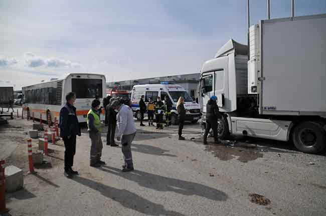 Eskişehir Organize Sanayi Bölgesinde tır ile halk otobüsünün çarpışması sonucunda meydana gelen trafik kazasında 2 kişi yaralandı