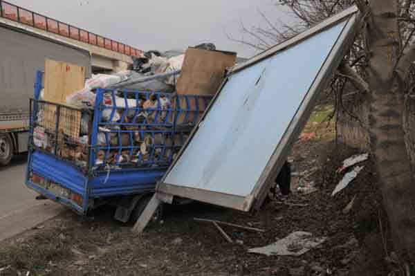 Kazanın etkisiyle sürücüsünün direksiyon hakimiyetini kaybettiği kamyonet, yol kenarında bulunan reklam panolarına çarparak durabildi.