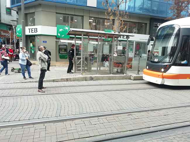 Eskişehir'de geçtiğimiz hafta yaşadığı binanın üçüncü katındaki evinden mutfak tüpü, koltuk, terlik gibi eline geçen her eşyayı sokağa rastgele fırlatan vatandaş, bu sefer de tramvayın önünü keserek ilginç anların yaşanmasına sebep oldu.