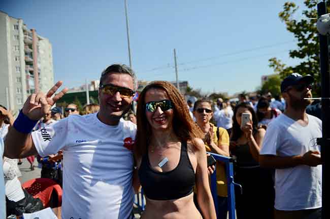 Etkinliğe katılan Gökhan Kılıç, bitiş çizgisine yaklaşırken kız arkadaşı Ebide Gökengin'e evlilik teklifinde bulundu.