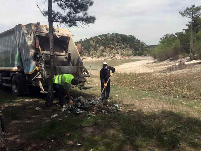 Bölgede orman yangınları ile mücadelede görevli olan 8 işçi mıntıka temizliği yaptı. 10 dönümlük bir alanı temizleyen işçiler bir çöp kamyonu dolusu atık ve geri dönüşüm malzemesi topladı.