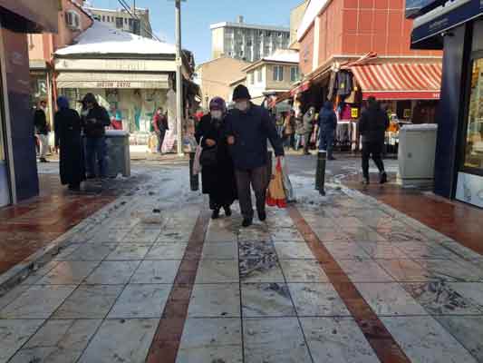Eskişehir’de hafta sonu sokağa çıkma kısıtlaması günlerindeki yoğun kar yağışı ardından bugün ilk kez dışarıya çıkan vatandaşlar, şehir merkezinde kar dolu, buzla kaptı yollardan yürürken oldukça zor anlar yaşadı.