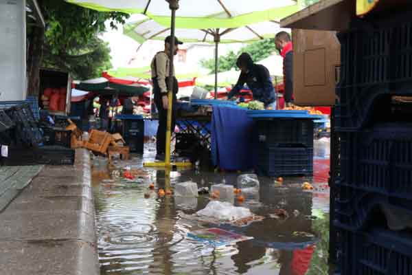 Eskişehir’de aniden bastıran yağmur sonucu altyapı problemi olan cadde üzerindeki semt pazarı adeta gölete döndü.