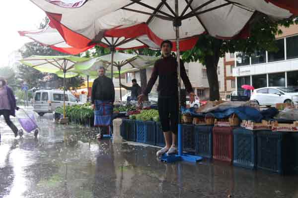 ...Mallarımız hep suyun altında kaldı. Müşteri yok, ama yağmurdan önce normaldi. Altyapı da eksik üstyapı da eksik. Her şey eksik. Bütün pazarlarda aynı sıkıntıyı yaşıyoruz. Kapalı pazar olsa işimizi yapabileceğiz” dedi.