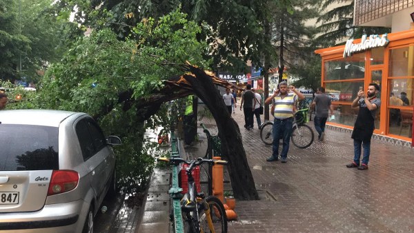 Eskişehir’de aniden bastıran yağmur ve dolu hayatı olumsuz etkilerken devrilen ağaçlar araçlara zarar verdi, çok sayıda araç Eskişehir'de 16.00 saatlerinde aniden başlayan yağmur ve dolu vatandaşları hazırlıksız yakaladı.