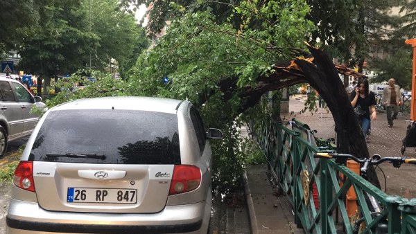 Eskişehir'de yağmur ağaçları devirdi!