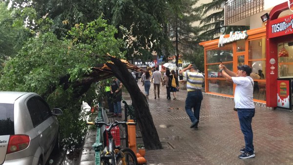 Eskişehir’de aniden bastıran yağmur ve dolu hayatı olumsuz etkilerken devrilen ağaçlar araçlara zarar verdi, çok sayıda araç Eskişehir'de 16.00 saatlerinde aniden başlayan yağmur ve dolu vatandaşları hazırlıksız yakaladı.