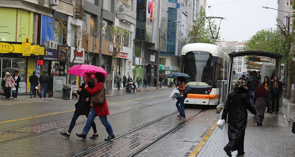 Eskişehir'de, öğlen saatlerinde başlayan kısa süreli yağmur, vatandaşlara zor anlar yaşattı.