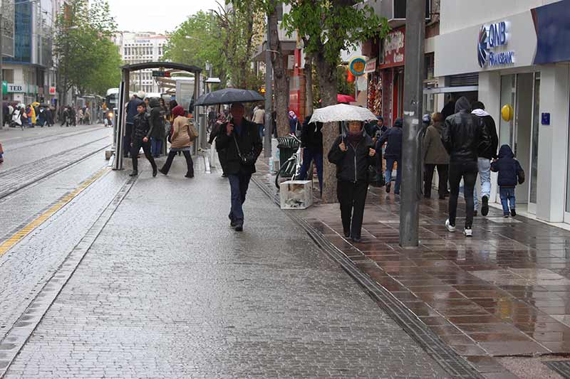 Eskişehir'de, öğlen saatlerinde başlayan kısa süreli yağmur, vatandaşlara zor anlar yaşattı.