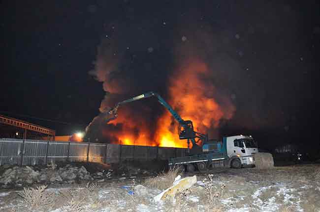 Eskişehir Tepebaşı'nda bulunan geri dönüşüm fabrikasında yangın çıktı, gece boyunca süren yangın sabaha karşı söndürülebildi