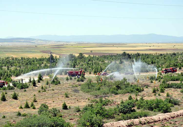 Eskişehir'de, Kocakır mevkisinde yapılan orman yangını tatbikatı, gerçeğini aratmadı.