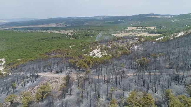 Bunun yanı sıra, ekipler yeni bir yangının başlamaması için önlemlerini alırken, soğutma çalışmalarına hızla devam ediyor. Çevrede bulunan köylü halkı da sabah saatlerine kadar olay yerinden ayrılmadı. Yanan yaklaşık 30 hektarlık alanın karadan ve havadan görüntülerinde yanının ne kadar etkili olduğu ise gözler önüne geliyor. Drone ile çekilen görüntülerde yangının gece boyu ne kadar bir alanı kül ettiği görülüyor.