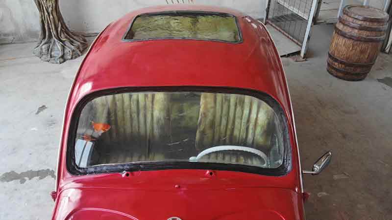 Eskişehir’de akvaryum ve hayvanat bahçesi dekorasyonlarında kullanılan ürünler tasarlayan bir firma, 1969 model Vosvos marka otomobili akvaryuma çevirerek farklı bir tasarıma imza attı.
