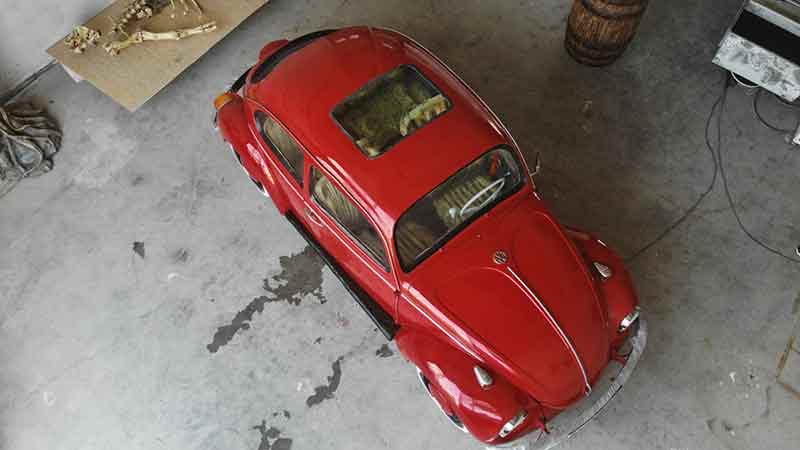 Türkiye’de tek olduğunu bildiğimiz ve dünyada da tek olduğunu düşündüğümüz bir proje. 1969 model bir Volkswagen arabanın dış kabuğunu alıp akvaryuma çevirdik. İçerisindeki su izolasyonu ve dizaynını tamamen kendimiz gerçekleştirdik. Yaklaşık 1 buçuk ton metreküp su taşımaktadır. Ağırlığı 2 ton ve 3 ay gibi bir sürede yapıldı.